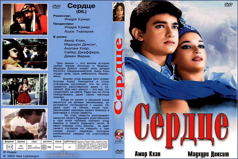 Фильм отличный! В целом, достаточно легкая мелодрама с хорошим концом, привычная для Болливуда того времени. Но актерские работы мощнейшие. Чтоб меня так замуж хотели взять))... Мадхури Дикшит и Аамир Кхан - одни из самых великолепных актеров всех времен! Она за "Сердце" получила приз, как лучшая актриса, и не зря - роль сыграна подобно взрыву бомбы! А, кроме того, Мадхури - всегда потрясающая красивая женщина с бездонными глазами )). Амир - ангелочек, душечка, при этом уже в 90-е в нем виден большой Мастер, прекрасный актер, который и сейчас не почивает на лаврах, а радует действительно интересными, мощными, разноплановыми ролями. (Галяяяz)