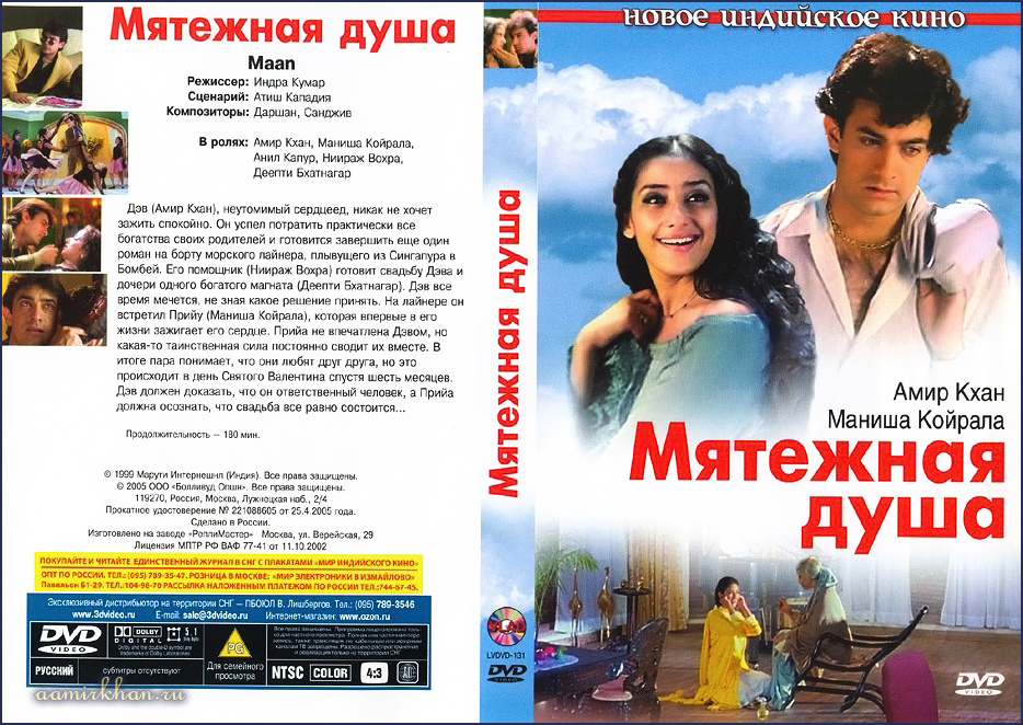 Интересна экранная судьба фильма Mann / Мятежная душа (1999) Индры Кумара, индийского римейка голливудской классики "An Affair to Remember". Чрезычайно романтическая и сентиментальная картина, рассказывающая о сказочно красивой всепобеждающей любви Дэва (Аамир Кхан) и Прийи (Маниша Койрала). Аамир Кхан сыграл здесь образ певца и художника, ветренного плейбоя, коллекционера девичьх сердец, который находит свою настоящую любовь - Прийю и кардинальным образом изменяется в верного и преданного возлюбленного. Аамир Кхан, как и во всех своих ролях, чрезвычайно профессионален и в образе Дева. Несмотря на некую картинную условность характера своего персонажа, актеру удалось наполнить этот образ настоящей жизнью и сыграть незабываемые финальные сцены с напряженным реалистическим драматизмом и мастерством актера мирового уровня. В момент выхода на экран в Индии фильм провалилсяся в прокате и был прохладно встречен кинокритиками. Почему? Тудно навать причину. Актерский дуэт Аамира Кхана и Маниши Койралы безукоризненно великолепен и интригующ. Структура фильма - это привычный и любимый индийскому зрителю жанр болливудской "масалы". Возможно потому, что музыка в фильме изобилует адаптациями на хинди популярных в то время хитов итальянской эстрады? Или потому, что обязательные юмористические вставки в фильме полны грубоватых шуток? Или, возможно, публика того времени жаждала увидеть более реалистический сюжет, близкий к обыденной жизни, а не романтическую сказку? Найти однозначный ответ затруднительно. Но факт остается фактом, поначалу фильм был принят аудиторией весьма холодно. Аамир Кхан тоже критически отнесся к этому фильму и, несмотря на свою прекрасно сыгранную роль, был недоволен тем, каким фильм получился в результате. С течением времени картина обрела большую популярность и завоевала стойкую любовь зрителей. Этот непроходящий интерес к фильму не исчезает и теперь, спустя более 9-ти лет от момента его выпуска на экран. Музыкальные номера, с раздражением воспринятые в 1999-м году, теперь вызывают восторг и сентиментальные воспоминания, а казавшиеся грубоватыми шутки, сейчас выглядят наивными и милыми, особенно на фоне господствующего на мировых киноэкранах вульгарного юмора Голивуда. Индийские и зарубежные почитатели индийского кино высоко ценят и любят роль Аамира Кхана в этом фильме, где соединились опыт высококлассного актера, зрелый мужской шарм и, вместе с тем романтическая чистота и наивность молодости. Для российского зрителя образ Дэва остается одной из любимейших ролей, созданных Аамиром Кханом.