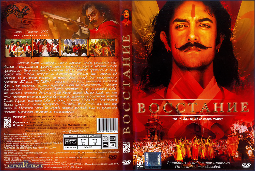 Что касается фильма "Восстание: Баллада о Мангале Пандее", то посмотрев фильм я была так поражена, насколько реалистические и высокие фильмы могут снимать в Болливуде! Игра Амира Кхана была просто потрясающая. Я полностью согласна с тем, что было сказано ранее меня, что в фильме был только воин-брамин Мангал, а не знаменитый актёр Индии Амир Кхан. (Miroslana)
