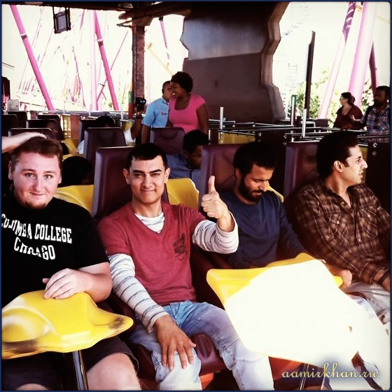 Aamir Khan and Abhishek Bachchan took time off from the busy schedule and enjoyed some roller-coaster ride at the 6 Flags amusement park in Chicago.