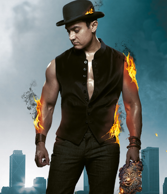 In his last Bollywood outing, Aamir Khan was seen in a double role and here again, he devoted his energies to creating a character that looked unique. For months, he wasn't seen off set without the bowler hat his character Sahir wears in the film. A sleeveless high-necked jacket topped his outfit - that is, when he wasn't atop a bike in leather jacket and helmet.