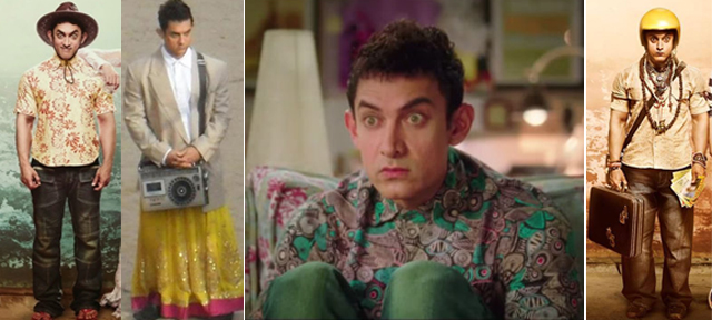 In his new release, Aamir's look and costumes (and lack of one too) have generated a lot of interest. And yet it is unclear who his character PK actually is. His clothes range from a skirt to a bandwala's outfit and his naturally popping-out ears are exaggerated. In addition, he has green lenses on, prompting speculation that PK could be an alien.