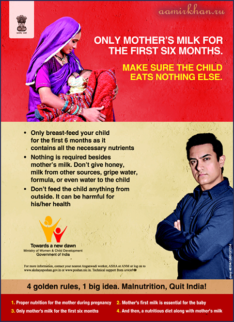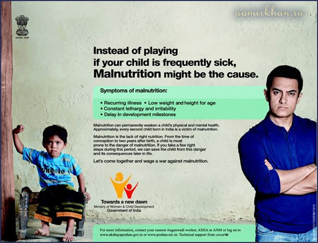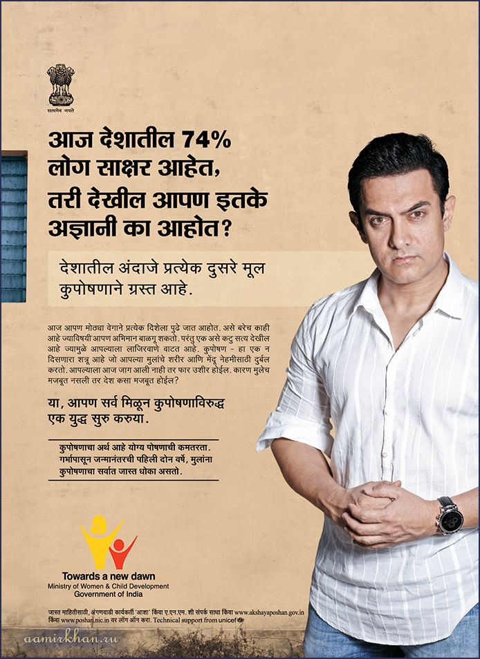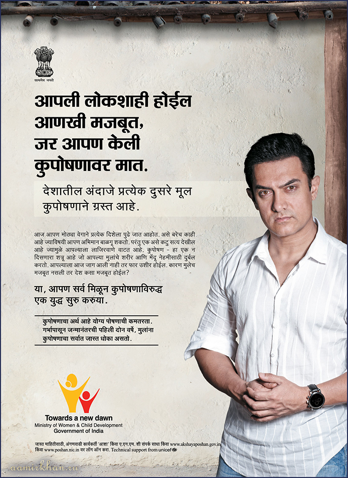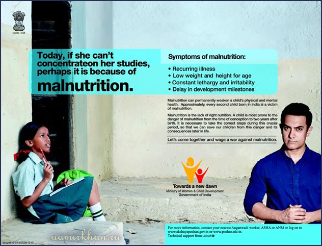 IEC campaign against Malnutrition. UNICEF Goodwill Ambassador, Aamir Khan. (TV, 2012-2013)