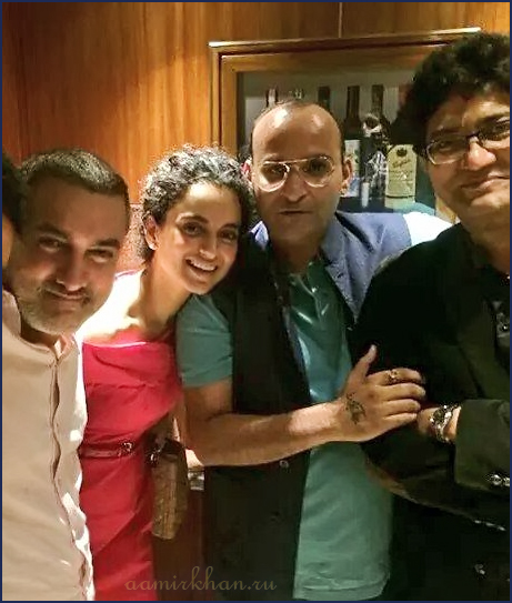 Фото из твиттера. Aamir Khan & Kangana Ranaut was spotted partying together with Sunil Bora & Prasoon Joshi.