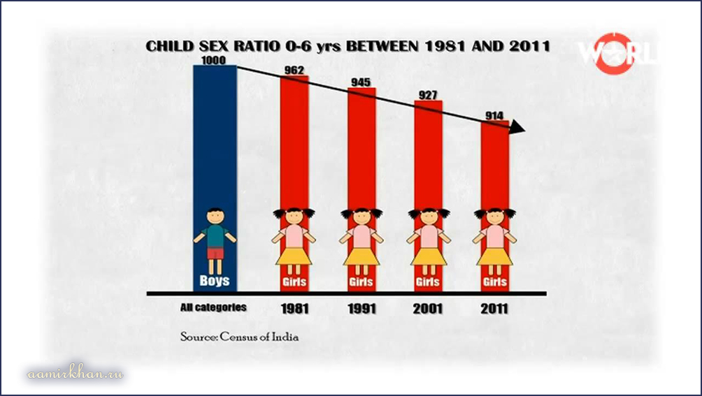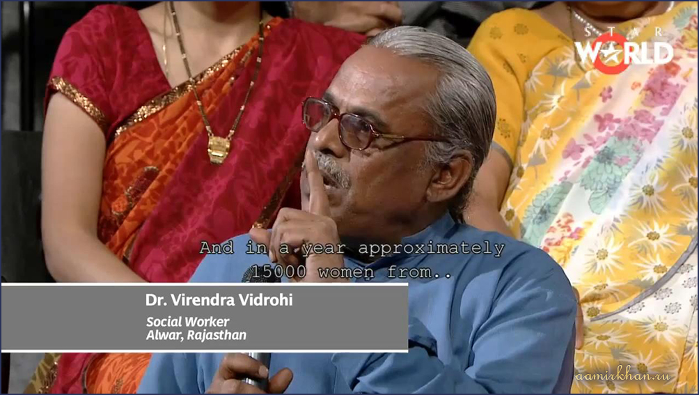 одноголосый закадровый (по субтитрам): kraffty/SKR Studio - описание: В первом эпизоде своего шоу, Аамир освещает проблему умерщвления плода женского пола, которая по своим масштабам может быть приравнена к национальной. В течение беседы раскрываются факты, что многие семьи при помощи врачей и социальных структур готовы на любые шаги, лишь бы иметь ребенка мальчика, но не девочку. Это привело к страшным цифрам - около 3 крор (1 крор = 10 000 000) плодов женского пола умерщвлено официально! Насколько велика эта цифра в реальности, остается только догадываться. Сейчас картина такова, что современному поколению проблематично найти партнера для создания разнополой семьи. Чем угрожает такой порядок? Какие меры можно принять? Обо всем этом - в первом эпизоде шоу Аамира Кхана "Истина всегда побеждает" (или "Правда всегда торжествует").