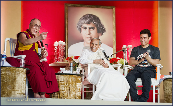 An interactive session with His Holiness the Dalai Lama and Rev. Dada J.P. Vaswani, hosted by Aamir Khan held on Sunday July 28th at the Sadhu Vaswani Mission in Pune, Maharashtra, India, as part of Rev. Dada J.P. Vaswani's 95th birthday celebrations.