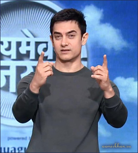 Но более всего впечатляет активная гражданская позиция Аамира, которую он твёрдо занимает как во время актёрской деятельности, так и в роли телеведущего. Будучи самой популярной звездой Болливуда, актёр мог обеспечить высокие рейтинги любой телевизионной программе, в которой пожелал бы принять участие. Но и здесь Аамир не пошел проторенной дорожкой, а проложил собственный путь. Он воплотил свою давнюю мечту использовать силу и возможности телевидения для разрешения социальных противоречий в Индии. Так было создано телевизионное социальное ток-шоу «Satyamev Jayate» - «Истина всегда побеждает» или «Правда всегда торжествует». Идея принадлежала актёру, а поддержка и активное участие его друзей помогли воплотить её в жизнь. Для выявления самых наболевших и упорно замалчиваемых проблем в Индии команда исколесила всю страну, опросила множество людей, устанавливала и проверяла факты, наводила справки. Население самых отдаленных уголков страны получило возможность приобщиться к созданию, а позже и просмотру передачи – была налажена возможность показа передачи в тех местах, где не было доступа к телевидению, разработан вебсайт и создана телефонная линия для связи с телезрителями, а саму передачу транслировали на 7 официальных языках Индии. Кроме того, идею этого телепроекта активно поддержал директор национального радио «Вся Индия», обеспечив трансляцию в общеиндийском радиоэфире. Специальная группа, состоящая более чем из тысячи человек, отвечала на сообщения зрителей, не оставляя ни одного отзыва без внимания. Перед массой людей Аамир открыто поднял такие серьёзные вопросы, как убийство нерождённых девочек, сексуальное насилие над детьми, домашнее насилие, кастовые различия, проблемы в здравоохранении, положение в обществе людей с ограниченными возможностями, нетерпимость межрелигиозных браков, алкоголизм и многие другие. Это настоящие социальные бедствия, от которых в той или иной мере страдает почти каждая индийская семья. Многие из этих тем не принято было поднимать в обществе, что только способствовало назреванию конфликта, но, к счастью, последнюю установку актёр и граждане Индии смогли успешно преодолеть. Аамир и его команда словно высекли искру, от которой зажегся настоящий костёр, рассеявший темноту апатии и бездействия. Во время телешоу жизнь огромной страны, занимающей второе место в мире по численности населения в 1 миллиард 280 миллионов человек замирала и практически все собирались у экранов и радиоточек. Множество людей откликнусь, заговорили, смогли наконец избавиться от страха и сделать первые шаги навстречу новым возможностям, перестали молчать и закрывать глаза на зло – а ведь нетерпимость и жестокость людей по отношению друг к другу это явные проявления зла в социуме.То, что проделали Аамир и его команда, причем не ради своей выгоды, а по собственной инициативе и с благими, бескорыстными намерениями, затронуло умы и сердца миллионов индийцев и является прекрасным примером для людей по всему миру. Аамир сделал первый шаг для решения любой, даже самой сложной проблемы – вытащил её на поверхность, признал её существование, и прежде всего, осознал неправильность происходящего и назвал вредный, укоренившийся шаблон «проблемой». А проблему не замечать сложнее, она уже требует внимания, изучения, решения. 