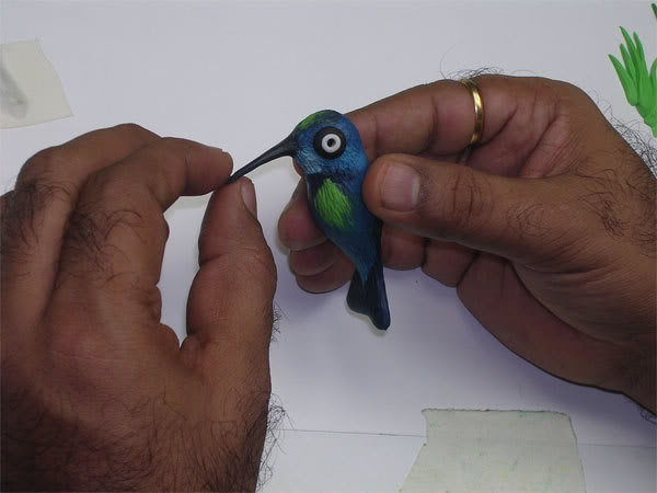 Sure. For certain scenes, instead of modeling directly on the table, we made replacements beforehand and used them to speed up the actual animation process. But in other scenes, like in the scene where the peacock turns into a flower, we had to sculpt on the table. Everything was animated on one layer rather than multiple glass layers as is generally used for this technique. We left very little work for post-production. Only the bee’s and bird’s wings were created using Photoshop. The scene where the Hippos is entering the water also needed to be done differently.