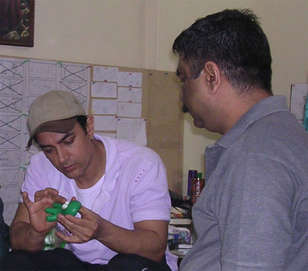 I had created the caricatures for the Lagaan DVD (Special Anniversary Edition Three Disc DVD box) I had shown Aamir some of my work which he had really appreciated. So when he decided to use animation for TZP, he approached me. Aamir initially wanted to use the classical animation style with a painterly quality. I suggested we try the clay animation technique. I showed him some samples. He liked it a lot and we decided to go ahead with clay animation.