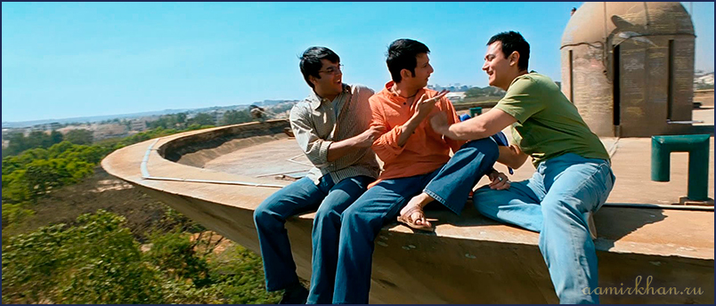 Конечно, такие ассоциации не были бы возможны, не будь эти герои так потрясающе сыграны замечательными актерами. И не только они. Вирус, директор колледжа в дивном исполнении Ирани, или вредный, но совершенно улетный Чатур-Глушитель, да и все остальные. Чудесный юмор, которым пронизан весь фильм, множество моментов-жемчужинок и, да, я уже говорила про озвучку? Она совершенна прекрасна, причем и перевод порадовал. А еще музыка, пейзажи, в общем — это такой фильм, где все сочетается самым лучшим образом. И все это возвращает меня в нашу общагу, где я не жила, но частенько бывала. В день, когда мы бежали за автобусом под дождем и потом ржали, греясь на заднем сиденьи. Или, когда мы с лекторм С. И. вдохновенно орали друг на друга, разделенные лишь словарями, а остальные, обалдев взирали на нас. В возмущение по поводу того, что расписание защиты курсовых опять повесли на неприметной бумажке у туалета, и обсуждение провокационных идей для презентаций изученных тем. В общем — это фильм-позитив, который я могу смотреть много раз, потому что оно все такое знакомое, и я влюблена в этих трех прекрасных идиотов. )))
