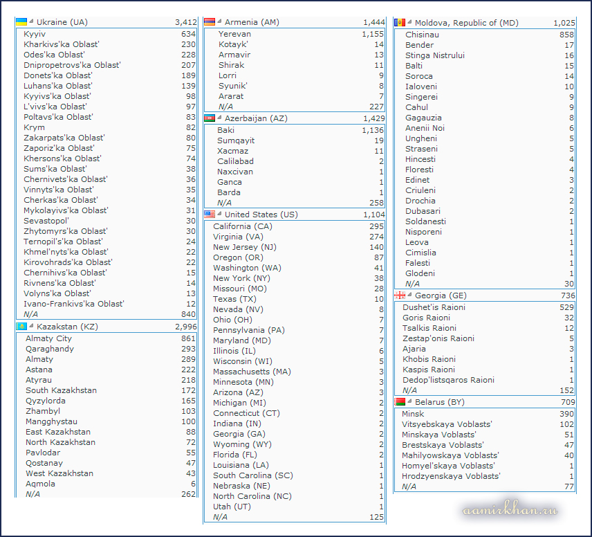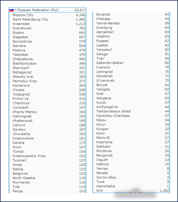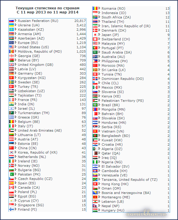Карта посетителей сайта по состоянию на утро 11.03.2014.